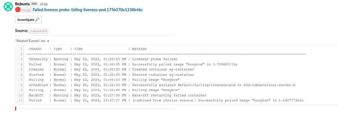 Example Slack NotificationFailed liveness probe notification on Slack