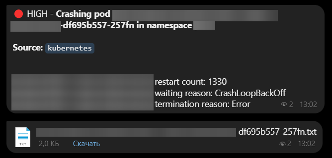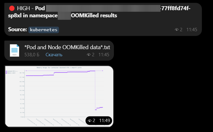 Tables (alert labels, events etc.) are sent as file attachments because they are not rendered properly in Yandex Messenger clients.